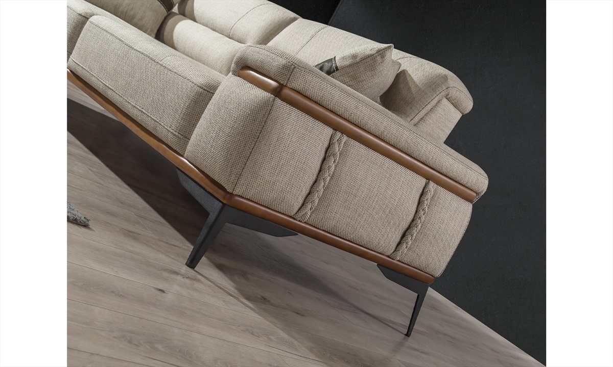 MODÜL ÖLÇÜLERİ ÜRÜN ADI Genişlik (W) Yükseklik (H) Derinlik (D) Kanepe 230cm 80cm 95cm Berjer 95cm 80cm 85cm ÜRÜN AÇIKLAMASI Takım İçeriği Ürün içeriği 2 adet kanepe, 1 adet berjerden oluşmaktadır. İsteğe bağlı olarak kanepe ve berjer miktarı azaltılıp çoğaltılabilir. İskelet Malzemesi Fırınlanmış gürgen ağacından üretilmiştir. Kumaş Malzemesi İthal, silinebilir kumaş kullanılmıştır. Sünger Malzemesi Yay ile güçlendirilmiş 32 DNS sünger kullanılmıştır. Ürün Bakımı Elektrik süpürgesi ile tozunu alabilirsiniz. Kesinlikle çamaşır suyu, deterjan gibi kimyasal maddeler kullanmayınız. Nemli bez ile silinebilir. Kumaş Rengi Kumaşlarda renk tercihi yapabilirsiniz. ÜRÜNLERİMİZ 2 YIL GARANTİLİDİR İSTEĞE BAĞLI ÖZELLİKLER Takıma istediğiniz modülü ekleyebilir ya da çıkarabilirsiniz. Çıkartılan modül veya eklenen modül takım fiyatına yansır. Müşteri talebine göre kumaş rengi ve türü değişebilmektedir, bu değişimden oluşan fark da takım fiyatına yansır.