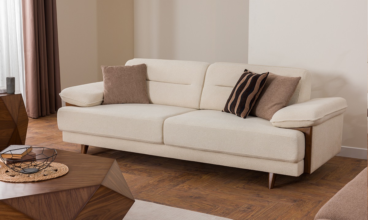 MODÜL ÖLÇÜLERİ ÜRÜN ADI Genişlik (W) Yükseklik (H) Derinlik (D) Kanepe 242cm 85cm 96cm Berjer 90cm 75cm 93cm ÜRÜN AÇIKLAMASI Takım İçeriği Ürün içeriği 2 adet kanepe, 1 adet berjerden oluşmaktadır. İsteğe bağlı olarak kanepe ve berjer miktarı azaltılıp çoğaltılabilir. İskelet Malzemesi Fırınlanmış gürgen ağacından üretilmiştir. Kumaş Malzemesi İthal, silinebilir kumaş kullanılmıştır. Sünger Malzemesi Yay ile güçlendirilmiş 32 DNS sünger kullanılmıştır. Ürün Bakımı Elektrik süpürgesi ile tozunu alabilirsiniz. Kesinlikle çamaşır suyu, deterjan gibi kimyasal maddeler kullanmayınız. Nemli bez ile silinebilir. Kumaş Rengi Kumaşlarda renk tercihi yapabilirsiniz. ÜRÜNLERİMİZ 2 YIL GARANTİLİDİR İSTEĞE BAĞLI ÖZELLİKLER Takıma istediğiniz modülü ekleyebilir ya da çıkarabilirsiniz. Çıkartılan modül veya eklenen modül takım fiyatına yansır. Müşteri talebine göre kumaş rengi ve türü değişebilmektedir, bu değişimden oluşan fark da takım fiyatına yansır.