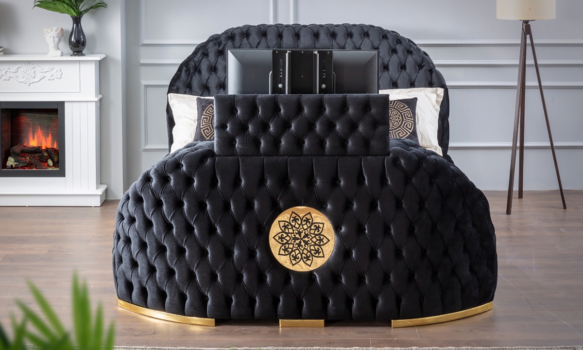 Başucunda bulunan kolçak mekanizması içerisinde; Kablosuz şarj özellikli ses sistemi ve 2 adet bardaklık bulunmaktadır. Kör baza olarak tabir ettiğimiz karyola somyası ve üst sunta gönderilir, basitçe montaj edildikten sonra yaylı yatağınızı üstüne koyabilirsiniz.MODÜL ÖLÇÜLERİ ÜRÜN ADI Genişlik (W) Yükseklik (H) Derinlik (D) Karyola 190cm cm 260cm ÜRÜN AÇIKLAMASI Takım İçeriği Ürün içeriği 1 adet akıllı karyoladan oluşmaktadır. İstenildiği taktirde 32 inç smart TV ilave edilmektedir. İskelet Malzemesi Fırınlanmış gürgen ağacından üretilmiştir. Kumaş Malzemesi İthal, silinebilir yönsüz kadife kumaş kullanılmıştır. Ürün Bakımı Kesinlikle çamaşır suyu, deterjan gibi kimyasal maddeler kullanmayınız. Nemli bez ile silinebilir. Kumaş Rengi Kumaşlarda renk tercihi yapabilirsiniz. Ürün Detayları Üründe baza kullanılmaz. Ayak ucunca; uzaktan kumandalı elektrikli görsel şömine ve uzaktan kumandalı TV lifti bulunmaktadır. Ayaklar ahşap ve deri kaplamadır renk seçenekleri parlak gümüş ve parlak altın şeklinde seçilebilir. Kurulum şeması ile gönderilir kurulumu oldukça basittir. ÜRÜNLERİMİZ 2 YIL GARANTİLİDİR
