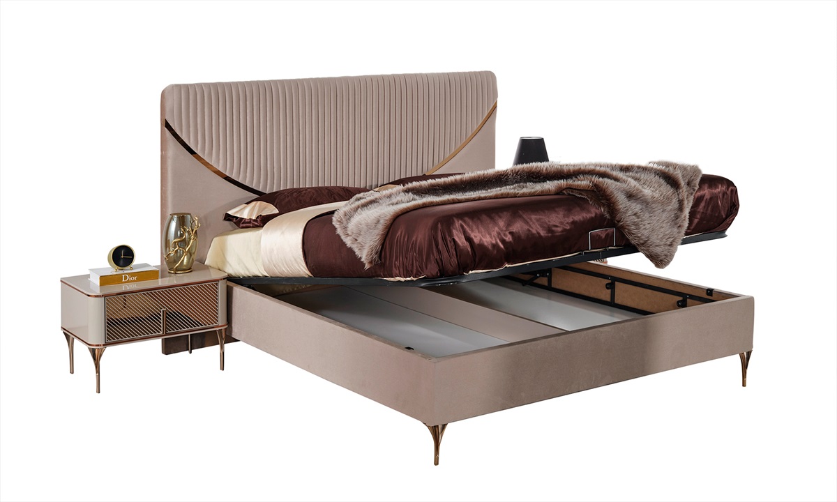 MODÜL ÖLÇÜLERİ ÜRÜN ADI Genişlik (W) Yükseklik (H) Derinlik (D) Dolap 260cm 220cm 65cm Karyola 230cmx200cm 135cm 160cm Şifonyer 134cm 85cm 45cm Komodin 65cm 45cm 40cm ÜRÜN AÇIKLAMASI Takım İçeriği 1 adet Dolap, 1 adet Karyola, başlık ve baza, 1 adet Şifonyer ve Ayna ve 2 adet Komodin bulunmaktadır. Ürün Malzemesi 1. Kalite Suntalam malzeme kullanılmıştır. Dolap Kapağı Fonksiyonu İthal Stoplu Menteşe Sistemi vardır. Karyola Başlık Malzemesi Sunta üzeri sünger ve kumaş kaplıdır. Çekmece Ray Sistemi İthal Teleskobik Ray kullanılmıştır. Yatak Ölçüsü 160 X200 Baza Opsiyonu Karyola bazalıdır. Ahşap ve Kumaş Bakımı Kesinlikle çamaşır suyu, deterjan gibi kimyasal maddeler kullanmayınız. Nemli bezle siliniz. Takıma Dahil Olmayan Ürünler Ürün Görselinde bulunan yatak, nevresim takımı ve dekor ürünleri takıma dahil değildir. ÜRÜNLERİMİZ 2 YIL GARANTİLİDİR İSTEĞE BAĞLI ÖZELLİK Takıma istediğiniz modülü ekleyebilir ya da çıkarabilirsiniz. Çıkartılan veya eklenen modül takım fiyatına yansır.