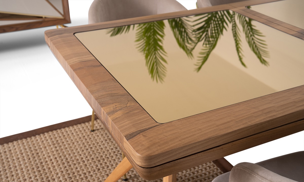 MODÜL ÖLÇÜLERİ ÜRÜN ADI Genişlik (W) Yükseklik (H) Derinlik (D) MASA 180cm 80cm 90cm KONSOL 228cm 80cm 47cm ÜRÜN AÇIKLAMASI Takım İçeriği Ürün içeriği 1 adet masa, 1 adet konsol, 1 adet ayna ve 6 adet sandalyeden oluşmaktadır. İsteğe bağlı olarak masa, konsol ve sandalye miktarı azaltılıp çoğaltılabilir. Ürün Malzemesi 18 mm MDF ve metal malzemeden üretilmiştir. Ayak Malzemesi Masa Ahşap, Konsol Metal, Sandalye Metal Masa Fonksiyonu Açılır Masa Sandalye Kumaş Kumaşta renk değişimi yapılabilir. Oluşabilecek fiyat farklılığı yansıtılmaktadır. Kumaş Bakımı Kesinlikle çamaşır suyu, deterjan gibi kimyasal maddeler kullanmayınız. Nemli bez ile silinebilir. ÜRÜNLERİMİZ 2 YIL GARANTİLİDİR İSTEĞE BAĞLI ÖZELLİKLER Takıma istediğiniz modülü ekleyebilir ya da çıkarabilirsiniz. Çıkartılan veya eklenen modül takım fiyatına yansır. Müşteri talebine göre kumaş rengi ve türü değişebilmektedir, bu değişimden oluşan fark da takım fiyatına yansır.
