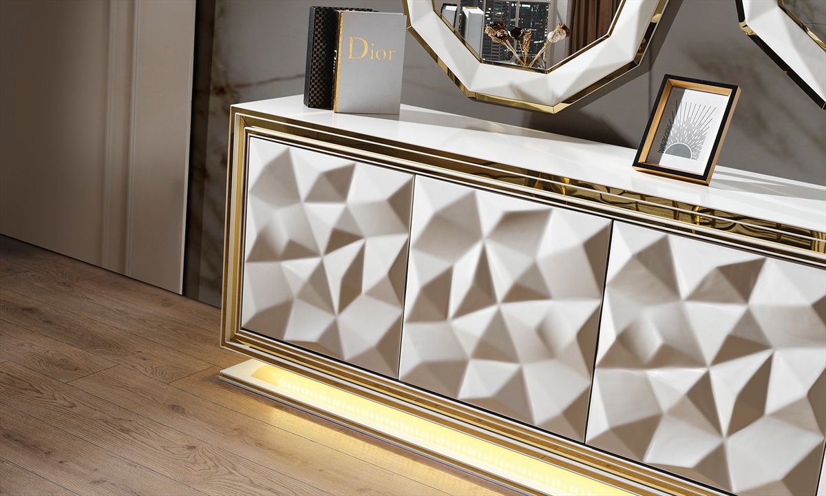 MODÜL ÖLÇÜLERİ ÜRÜN ADI Genişlik (W) Yükseklik (H) Derinlik (D) MASA 208cm 80cm 100cm KONSOL 228cm 78cm 45cm ÜRÜN AÇIKLAMASI Takım İçeriği Ürün içeriği 1 adet masa, 1 adet konsol, 1 adet ayna ve 6 adet sandalyeden oluşmaktadır. İsteğe bağlı olarak masa, konsol ve sandalye miktarı azaltılıp çoğaltılabilir. Ürün Malzemesi 18 mm MDF ve metal malzemeden üretilmiştir. Ayak Malzemesi Masa Ahşap, Konsol Ahşap, Sandalye Metal Masa Fonksiyonu Sabit Masa Sandalye Kumaş Kumaşta renk değişimi yapılabilir. Oluşabilecek fiyat farklılığı yansıtılmaktadır. Kumaş Bakımı Kesinlikle çamaşır suyu, deterjan gibi kimyasal maddeler kullanmayınız. Nemli bez ile silinebilir. ÜRÜNLERİMİZ 2 YIL GARANTİLİDİR İSTEĞE BAĞLI ÖZELLİKLER Takıma istediğiniz modülü ekleyebilir ya da çıkarabilirsiniz. Çıkartılan veya eklenen modül takım fiyatına yansır. Müşteri talebine göre kumaş rengi ve türü değişebilmektedir, bu değişimden oluşan fark da takım fiyatına yansır.